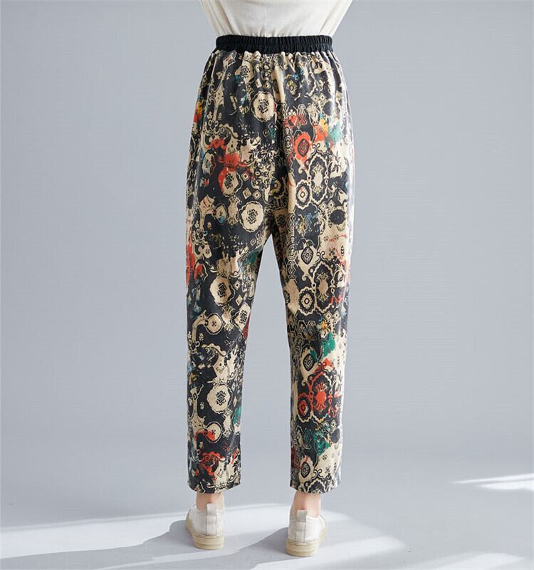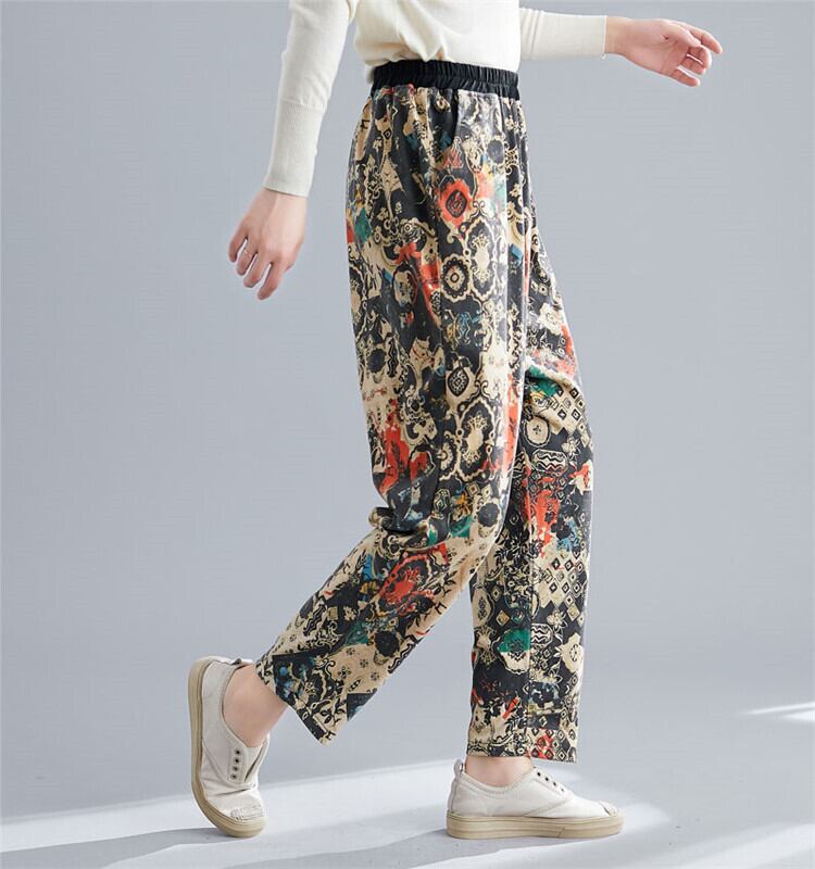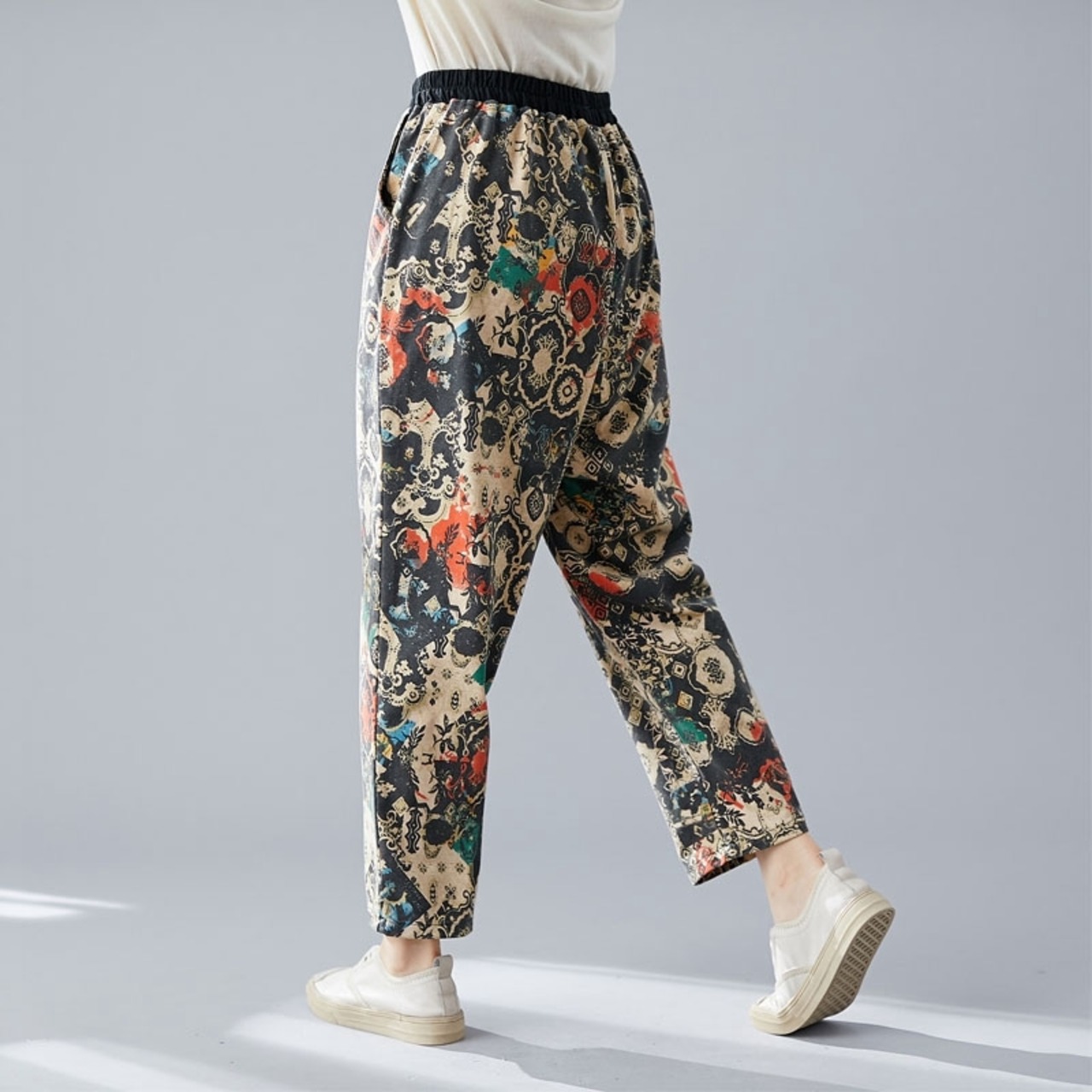 リテラリープラスサイズの女性の秋、ウエスタンスタイル、レトロなプリント、ルーズで薄い伸縮性のあるウエストハーレムパンツ、ファットmmパンツ エラスティック 大きめサイズ オータム 秋物 TB2-53 TB2-5382288164880