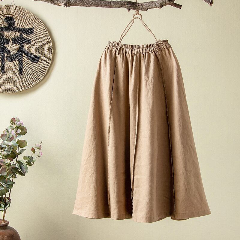 SuyiLane無地ステッチラージサイズリネンスカート文芸レジャールーズで薄いコットンとリネンオールマッチ女性ボトムス秋 大きめサイズ オータム 秋物 ソリッドカラー TB2-56 TB2-5676808836364