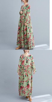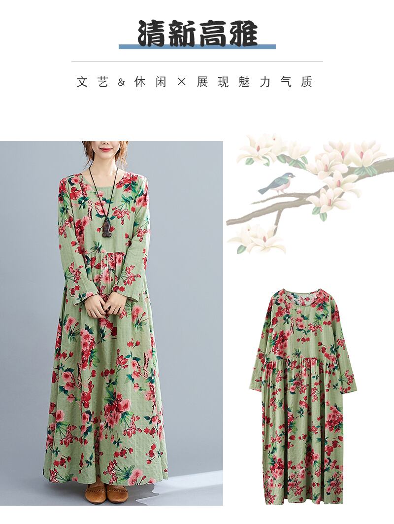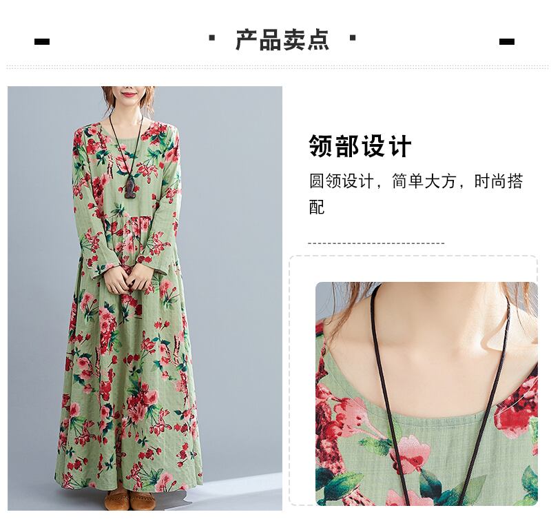 プリントされた腹は薄く、洋風のラージサイズのドレスの女性はルーズラウンドネックホリデーロングスカート春2021年の新しい女性 大きめサイズ スプリング 春物 Oネック TB2-49 TB2-4950441377540