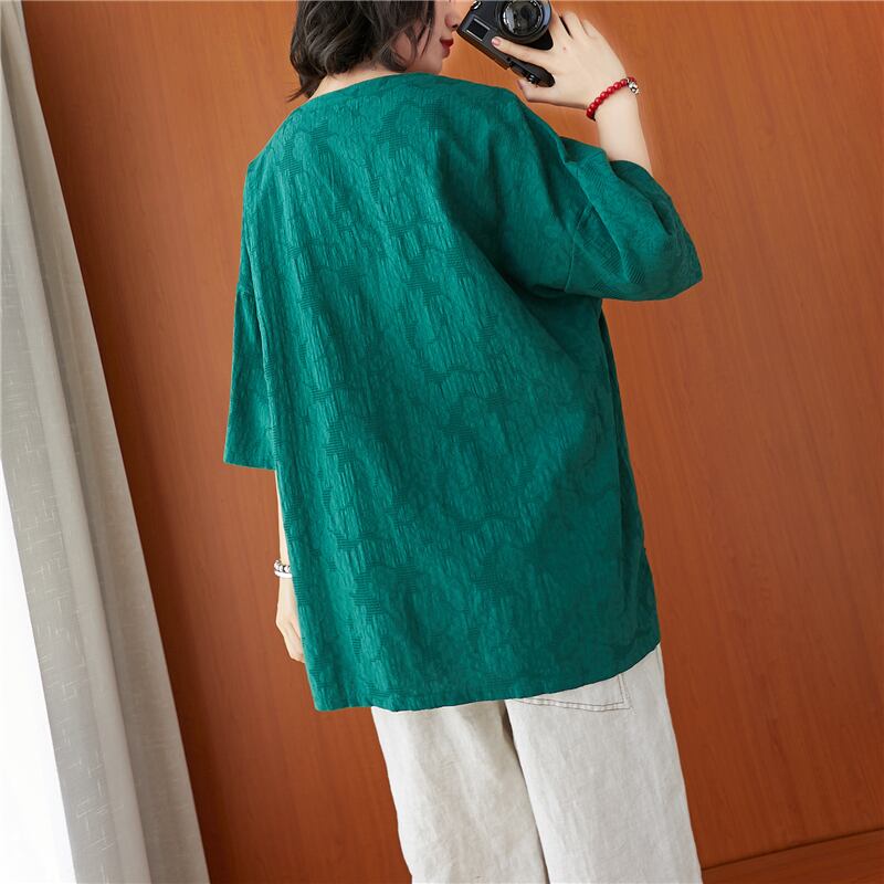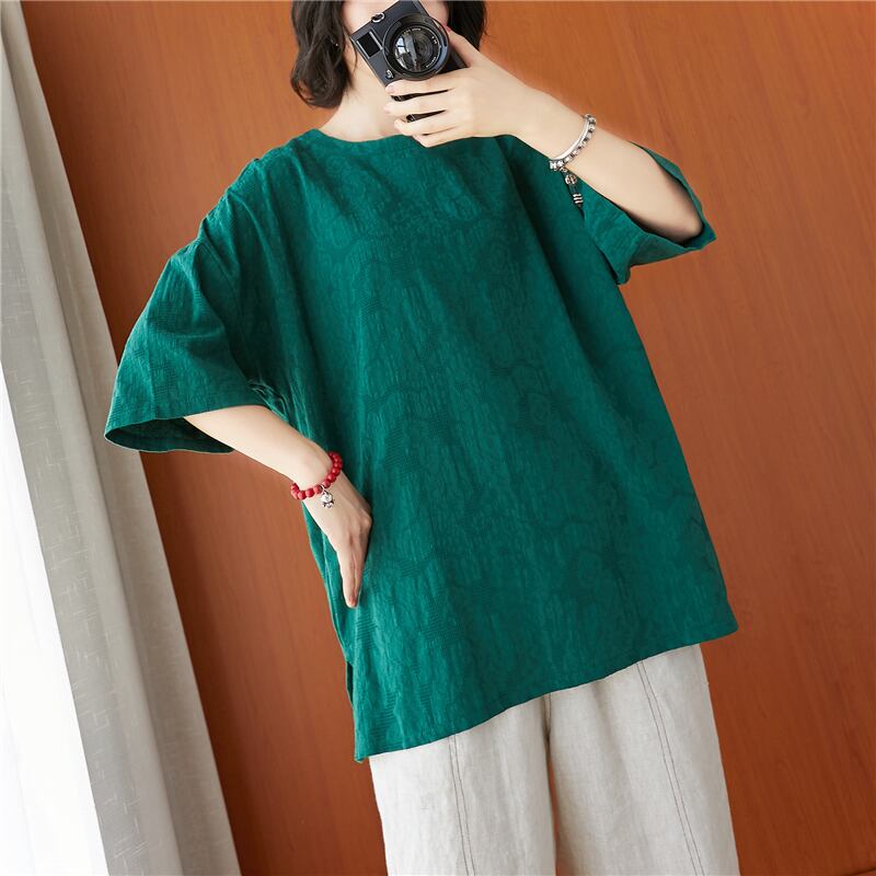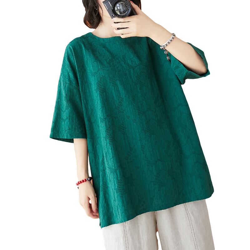 ラージサイズの刺繡ジャカードレトロTシャツレディースサマードレス2021新しいファッション年齢を減らすカバー腹ルーズスリミングトップ 刺繍 大きめサイズ 夏物 TB2-49 TB2-4955306744825