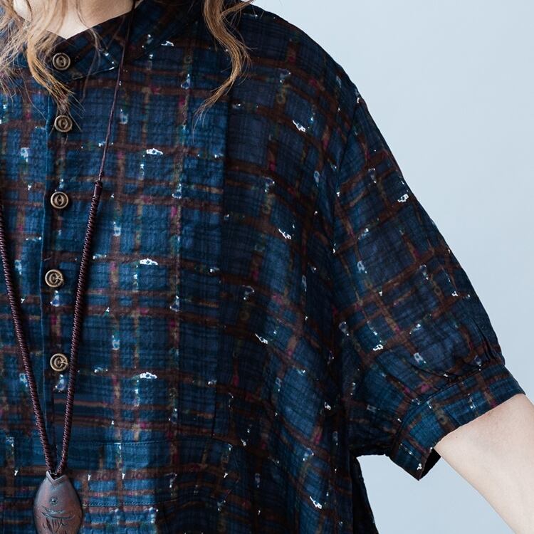 ファットmmサマーニュースリムプラスサイズレディースレトロウエスタンスタイルチェッカースタンドカラー半袖ルーズビッグスイングドレス ショート レッド ハーフスリーブ 大きめサイズ 夏物 TB2-53 TB2-5360199017726