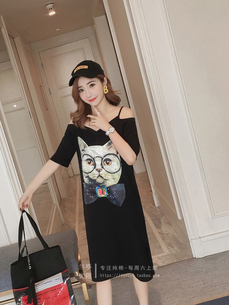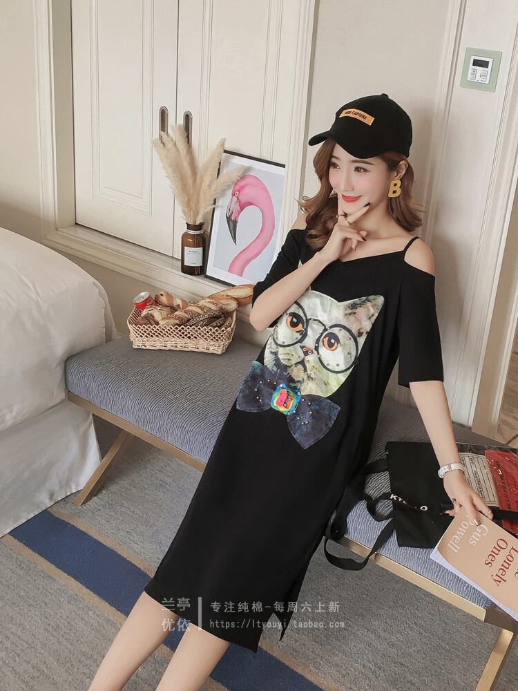 2021年初春パッチミドル丈中空ストラップレスVネック半袖Tシャツドレスラージサイズコットンドレスボトミングスカート夏 大きめサイズ スプリング 春物 サマー 夏物 TB2-16 TB2-1654118609139