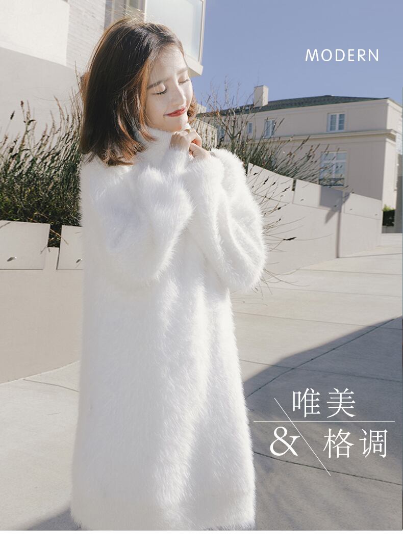 怠惰なスタイルのモヘアタートルネックセータースカート女性小さなルーズ厚いミドル丈ミンクベルベットセーターアウターウェア TB2-52 TB2-525517783522