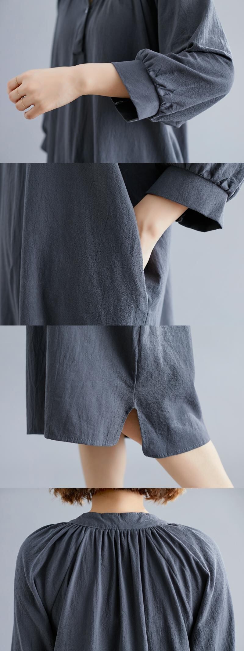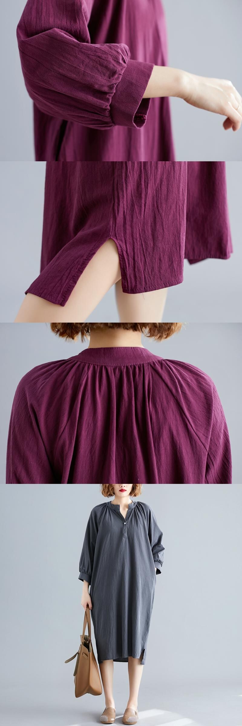 プラスサイズワンピースファットシスターmmルーズエイジリダクション無地Vネック長袖ミドル丈スカート2020秋新作 ロング 大きめサイズ オータム 秋物 ソリッドカラー TB2-49 TB2-4982957067999