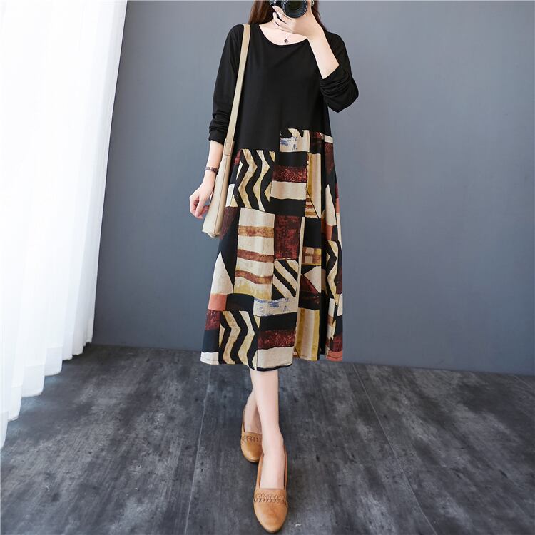 ファットシスターカバーベリースリミングドレスレディース2020年秋新作ルーズチベット肉プリントステッチ大サイズベーススカート 大きめサイズ オータム 秋物 TB2-49 TB2-4917457073227