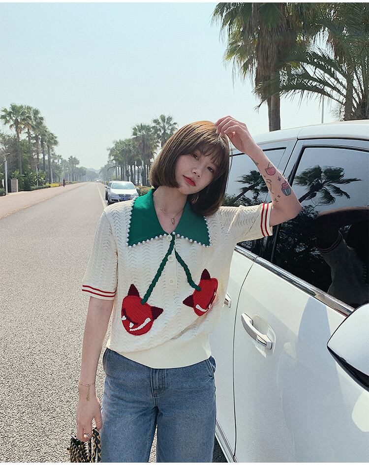 チェリードールカラー半袖セーターレディースサマーシンスタイルアインスタイルパールホロールーズルーズ&シンカラーマッチングブラウス 夏物 真珠 TB2-52 TB2-5211499044564