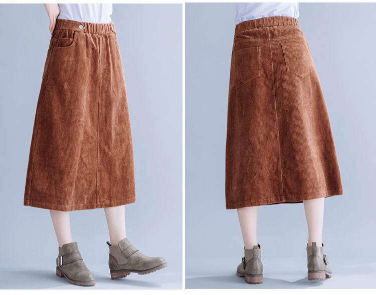 ファットシスタープラスファットプラスサイズコーデュロイスカート女性伸縮性ウエストミドル丈スカート女性秋新スタイル2020 エラスティック 大きめサイズ オータム 秋物 TB2-49 TB2-4927684129753