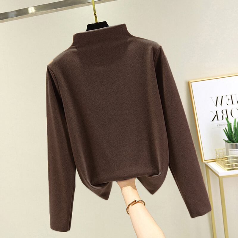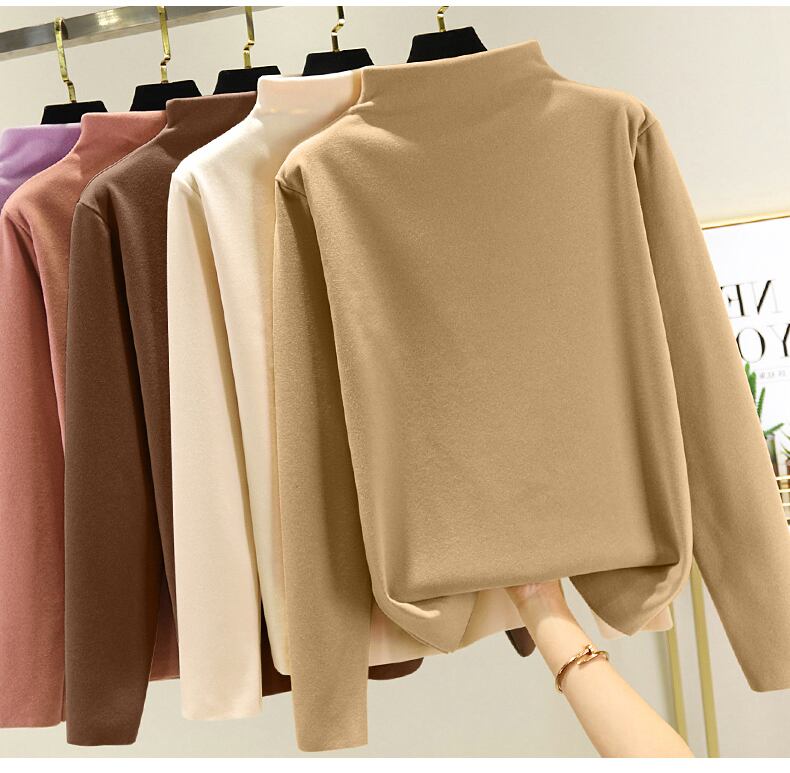 カチオン性ボトミングシャツ女性2021年秋冬ハーフハイカラーストレッチ無地インナー長袖ドイツベルベットプラスベルベット厚春秋 ロング スプリング 春物 オータム 秋物 ウィンター 冬物 ソリッドカラー TM2-3 TM2-349395000947