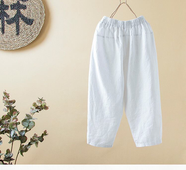 SuyiLaneラージサイズリネンカジュアルクロップドパンツサマーレトロバックルステッチ薄足ハーレムパンツレディース2020 大きめサイズ 夏物 TB2-56 TB2-5662859386192