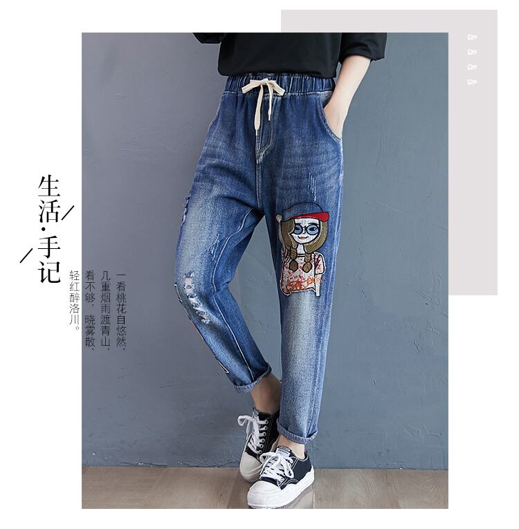 2020年秋新作ファットmm刺繍ルーズで薄い伸縮性ウエストネクタイデニム足9点パンツプラスサイズの女性 レッド エラスティック 大きめサイズ オータム 秋物 TB2-53 TB2-538069578396