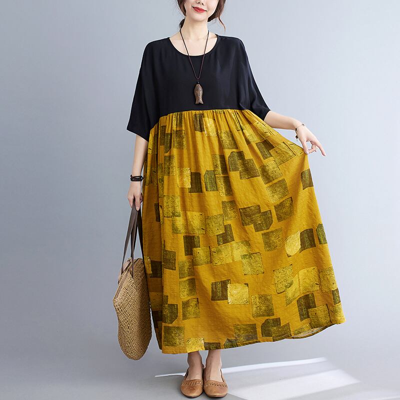 ラージスイングロングドレス、ラージサイズのスウィートとウエスタンスタイルの夏、ヒップファットmmドレスをカバーするために膝の上に200kgのステッチプリント 大きめサイズ 大人ガーリー キュート カジュアル サマー 夏物 TB2-36 TB2-3611405843078