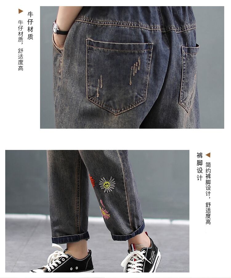 Suyixiangレトロスタイルの文学刺繡ジーンズ女性の伸縮性ウエスト細いハーレムパンツカジュアルオールマッチパンツ 刺繍 エラスティック TB2-56 TB2-5617085419567