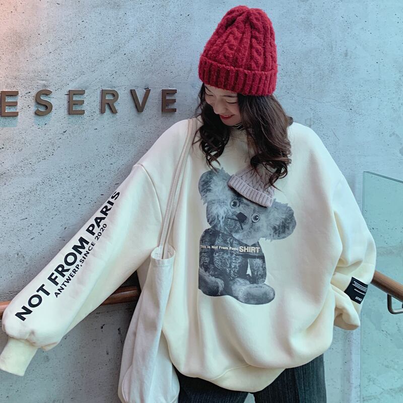 クマの漫画のセーターの女性2020年秋冬の学生に加えてbf怠惰な風のジャケットの潮のベルベットの厚いルーズバージョン オータム 秋物 ウィンター 冬物 TB2-45 TB2-4541831904208