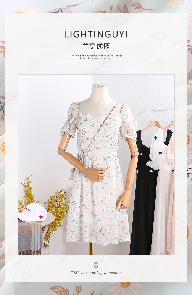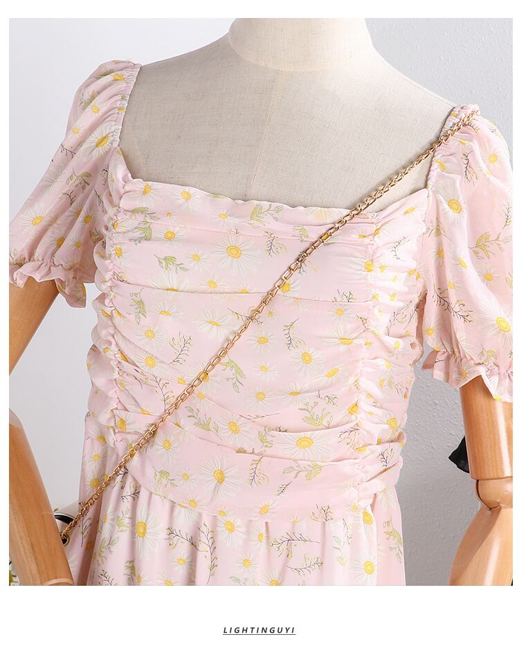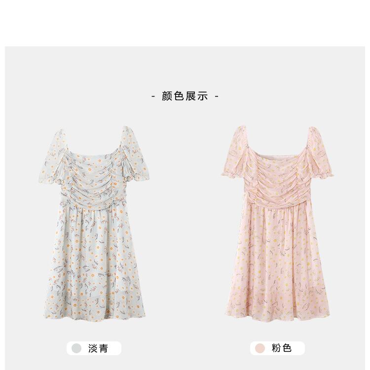 夏の新気質シフォンスカートデザインセンスニッチフレンチスクエアカラーワンピースファットmmスリミングベリーロングスカート サマー 夏物 スクウェア TB2-16 TB2-1690635779704