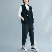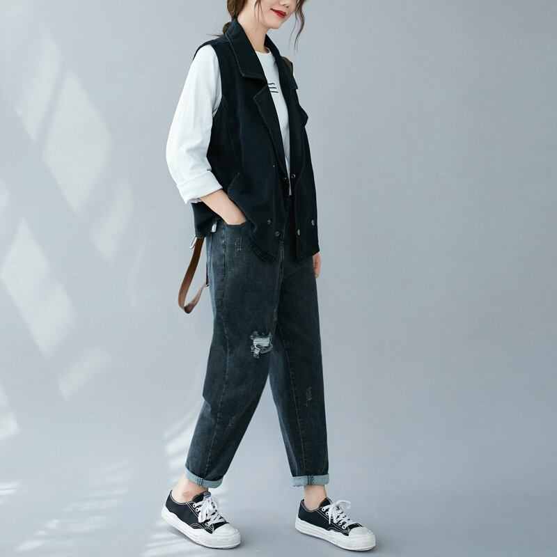 ファットMMプラスサイズのワイルドレトロウエスタンスタイルベストベストルーズチョッキ無地ノースリーブジャケットの女性用バージョン 大きめサイズ ソリッドカラー TB2-53 TB2-5370763166055