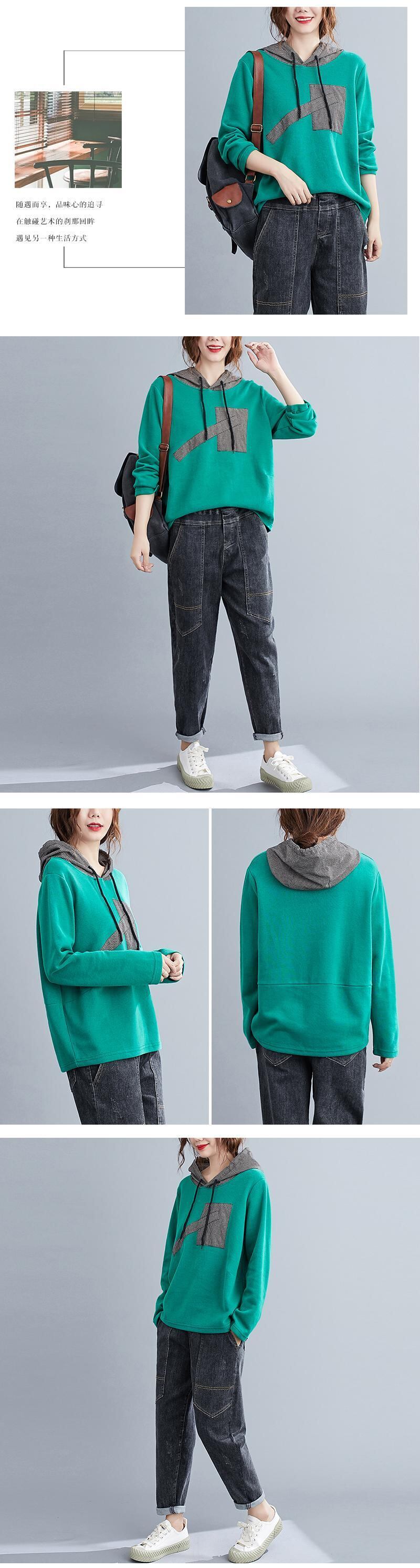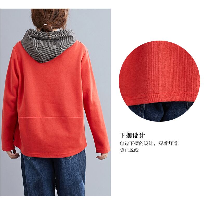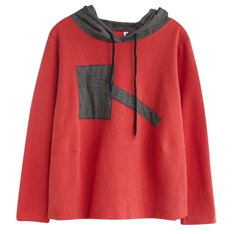 リテラリープラスサイズ婦人服2020秋ファットmmウエスタンスタイルパッチチェック柄フード付きセーターカバーお腹スリミングトップス 大きめサイズ オータム 秋物 TB2-53 TB2-5351680986364