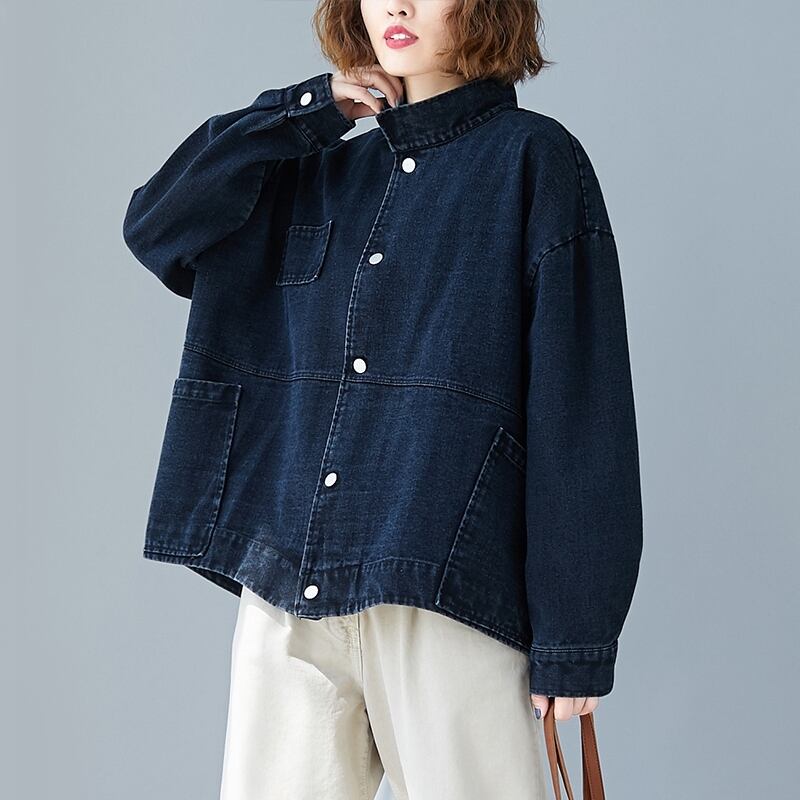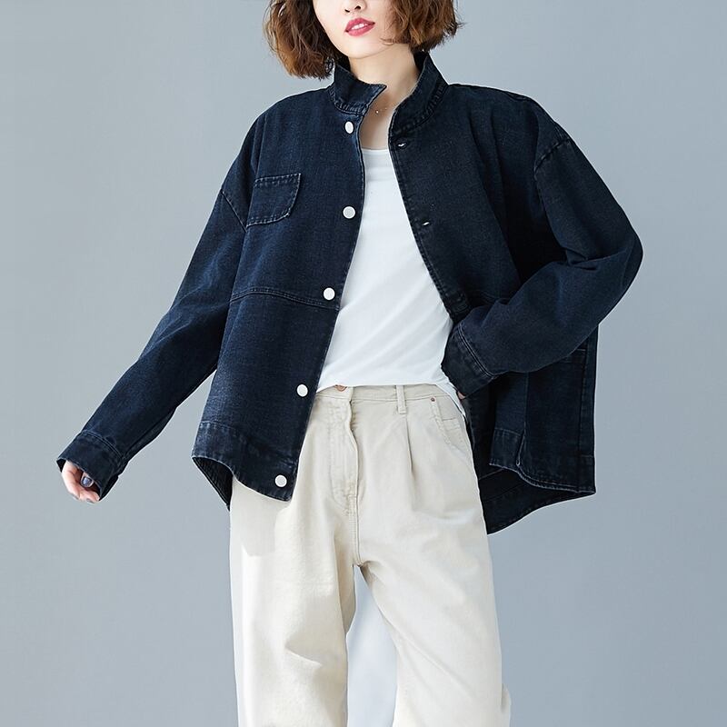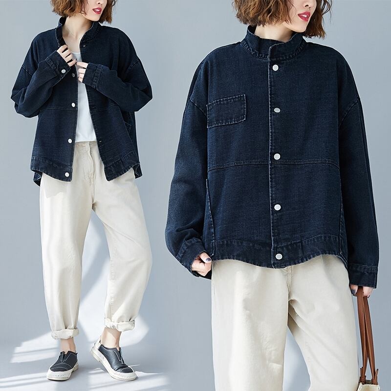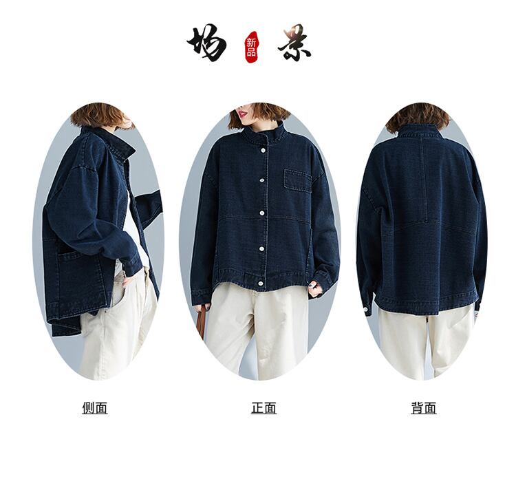 マイクロファットmmウエスタンスタイルレトロスタンドカラールーズシングルブレストデニムジャケットジャケットトップスプラスサイズ婦人服 大きめサイズ TB2-53 TB2-5383049628218