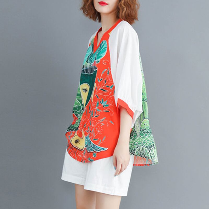 ラージサイズのTシャツ女性の2021年夏の新しい太った姉妹のファッショナブルな漫画の印刷半袖のルーズで薄いカバーのベリートップ 大きめサイズ サマー 夏物 TB2-49 TB2-4918031240464