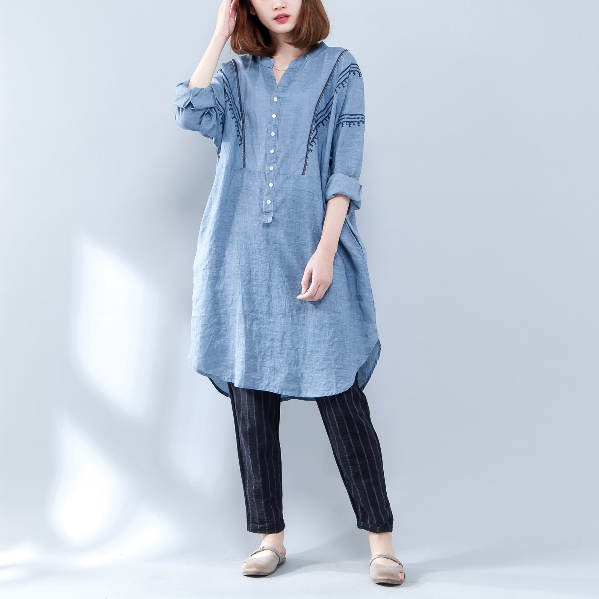 やや太めのmm秋の服ミドル丈Vネック気質刺繍ルーズで薄手の長袖シャツ、ラージサイズのレディーストップス ロング レッド 大きめサイズ オータム 秋物 TB2-53 TB2-5316617365803