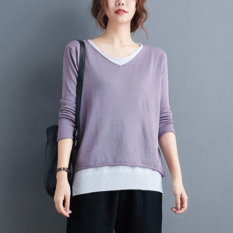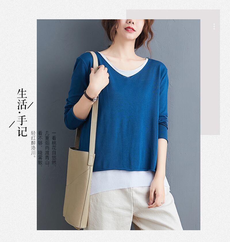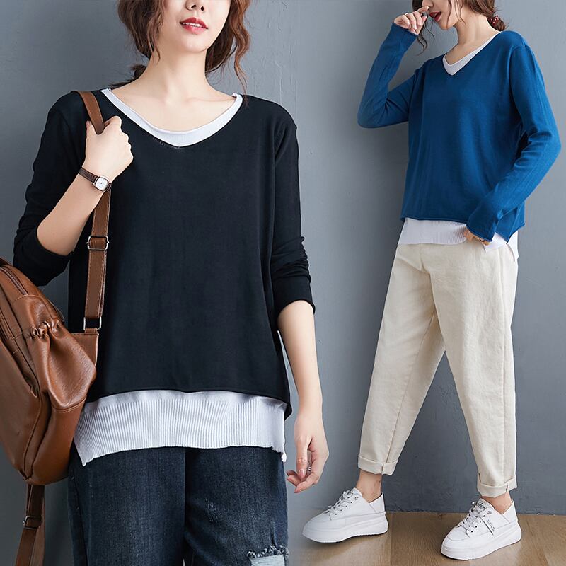 ファットシスターフェイクツーピースニットセータープラスサイズレディース長袖プルオーバーボトミングトップレディース秋の服2020ニュースタイル ロング 大きめサイズ オータム 秋物 TB2-49 TB2-4974869607137