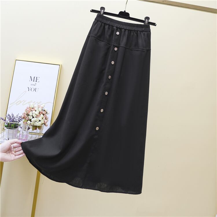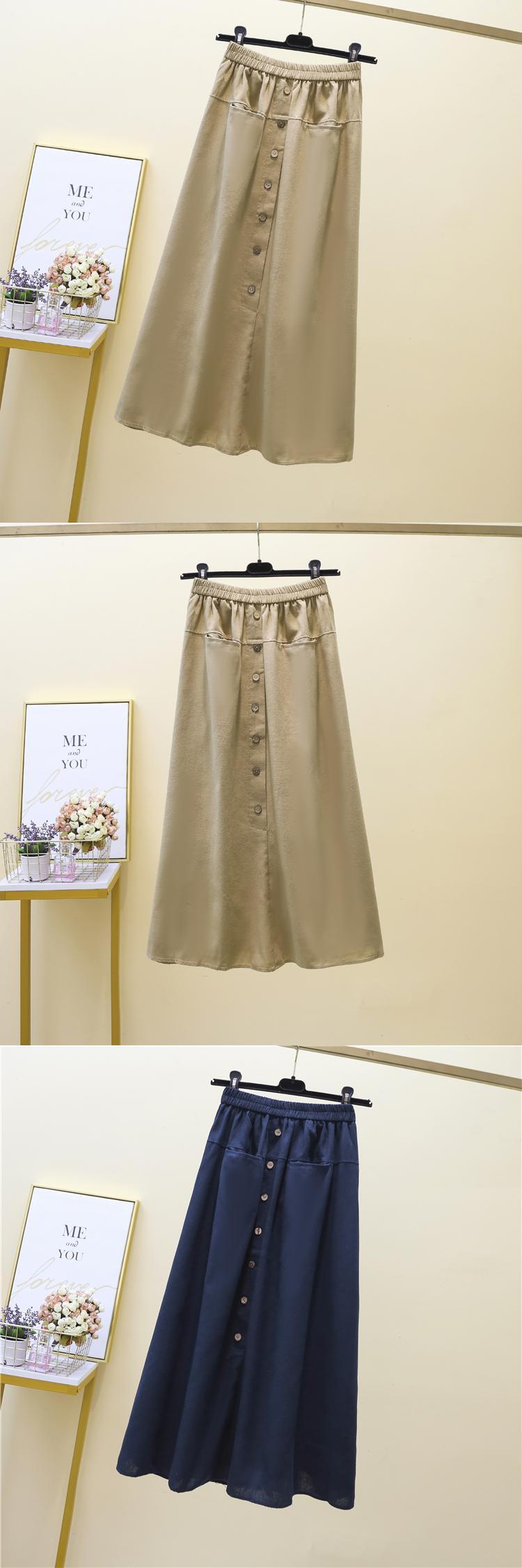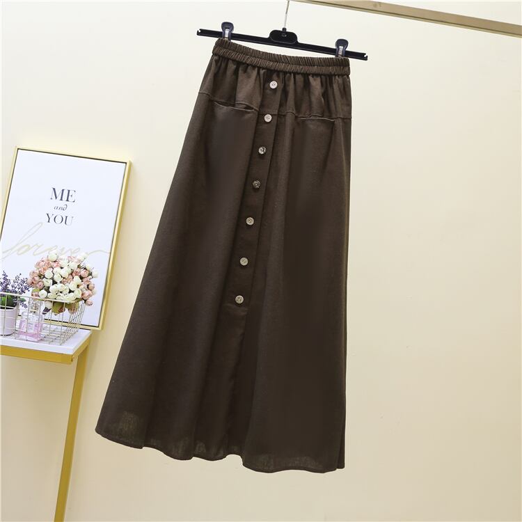 2021年夏の新しいスタイルのeignトレードプラスサイズのコットンとリネンの無地のブレストスカート伸縮性のあるウエストダブルポケットミドル丈スカート エラスティック 大きめサイズ サマー 夏物 ソリッドカラー TB2-59 TB2-5960200924634