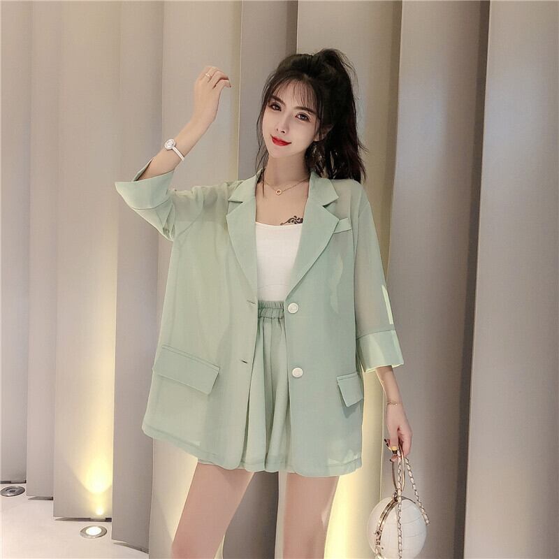 少し香りのよい気質シフォンスーツスーツ女性の夏の薄いスタイルのファッションライト成熟したスーツショーツツーピーススーツ サマー 夏物 ブルマー TB2-60 TB2-6072535518015