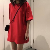トレンディな香港スタイルのネットレッドの学生ルーズハーフスリーブトップスピュアコットンのインミッドレングス無地半袖Tシャツ女性夏バージョン サマー 夏物 ソリッドカラー TM2-3 TM2-330923707454
