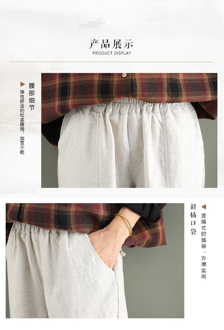 Suyi Lane2020秋新作ルーズストレートレッグパンツカジュアルリテラリースタイルリネン伸縮性ウエストナインポイントパンツストレートレッグパンツレディース エラスティック オータム 秋物 TB2-56 TB2-5645740183640