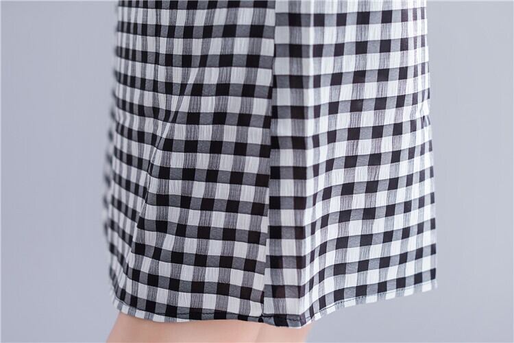 気質ドレスの女神ファン2021新しいルーズエイジを減らすウエスタンスタイルのステッチチェック柄半袖プラスサイズのスカート夏 大きめサイズ サマー 夏物 TB2-49 TB2-4996737621258