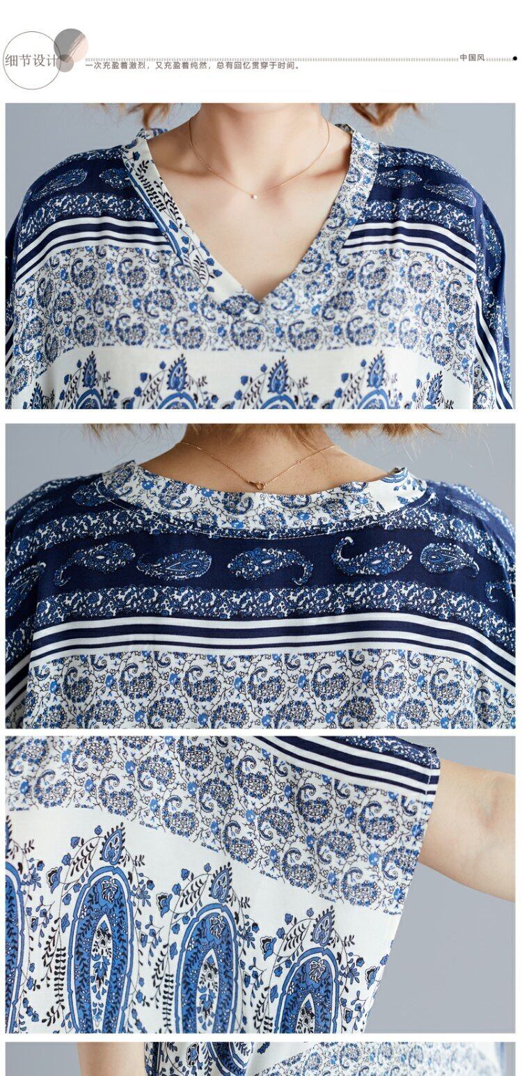ファットシスターサマードレスエスニックスタイルレトロVネック肥満スーパーファットスーパールーズベリー200kgプラスサイズワンピースドレス 大きめサイズ 夏物 TB2-36 TB2-3648080220922