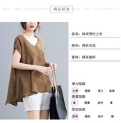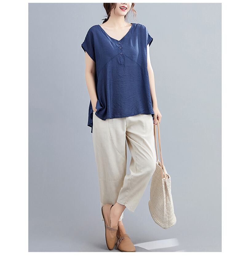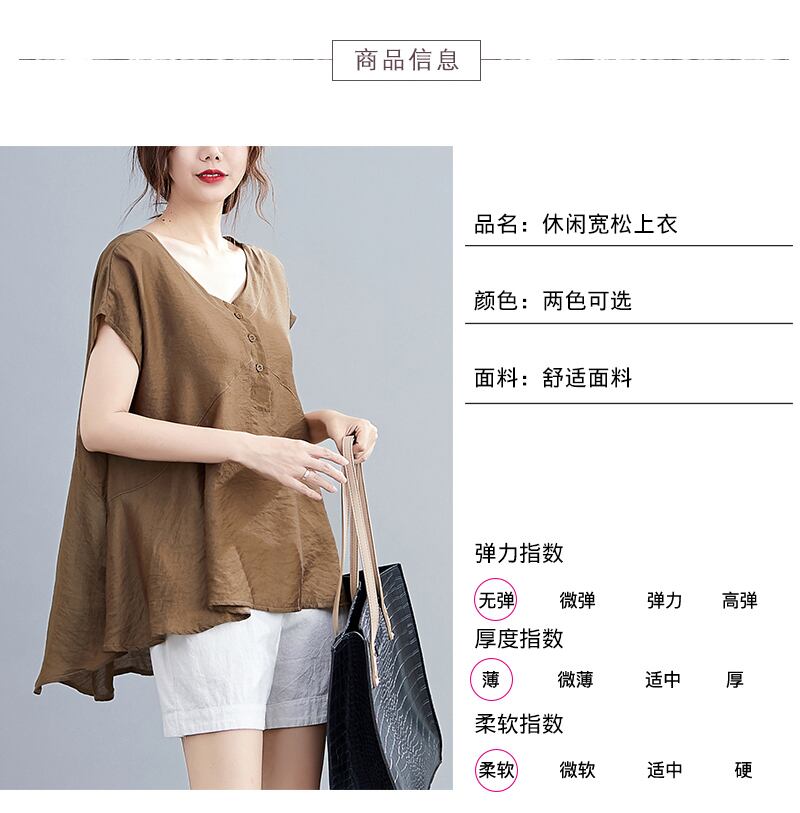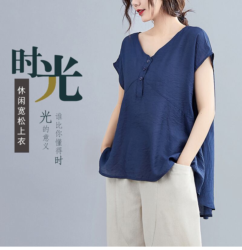 2021年夏の新しい女性の大きなサイズのルーズで薄い無地の半袖TシャツファッションVネックチベット肉オールマッチブラウス女性 大きめサイズ サマー 夏物 ソリッドカラー TB2-49 TB2-4944525781492