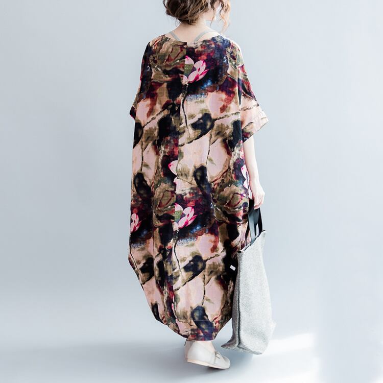 プラスファットプラスサイズの女性のエスニックスタイルのプリントレトロなコットンと膝上にリネンロングスカートファットmmルーズカジュアルドレス夏 大きめサイズ サマー 夏物 TB2-36 TB2-3661127313876