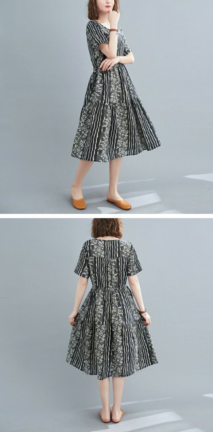 太ったお姉さんは細く、ウエストはプリント、ラウンドネック、半袖、ラージサイズ、お腹を覆う隠し肉、夏のビッグスイング、ヒップドレストレンド 大きめサイズ サマー 夏物 Oネック TB2-36 TB2-3691583273632