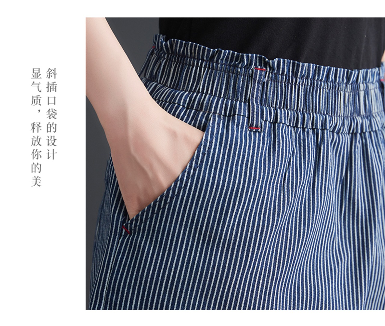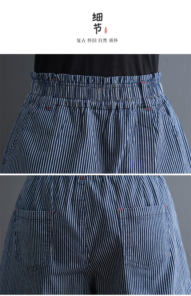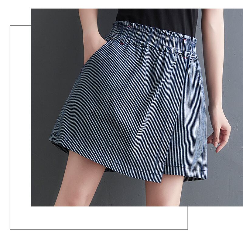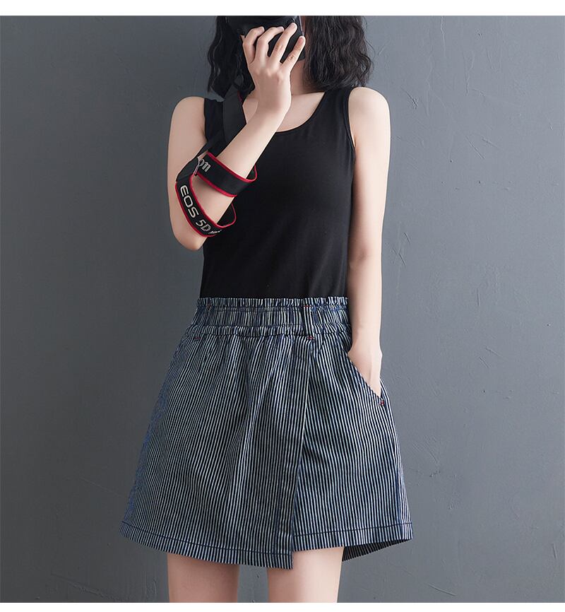 不規則なストライプデニムショーツ2021新しいプラスサイズの女性のズボンはレトロな野生の薄いキュロットの夏服を緩めます 大きめサイズ サマー 夏物 ブルマー TB2-49 TB2-4949847616564