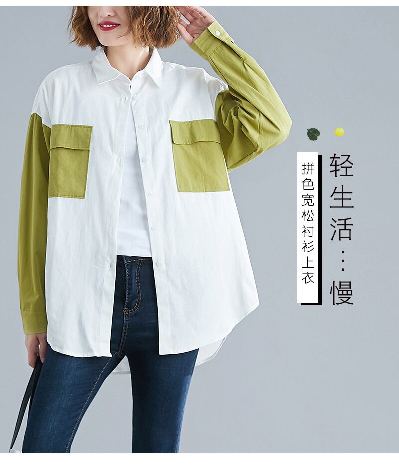 2020年初秋新バージョンのファッショナブルなコントラストカラーステッチルーズで薄い長袖シャツプラスサイズの女性のファットmmトップ ロング 大きめサイズ オータム 秋物 TB2-53 TB2-537037304476