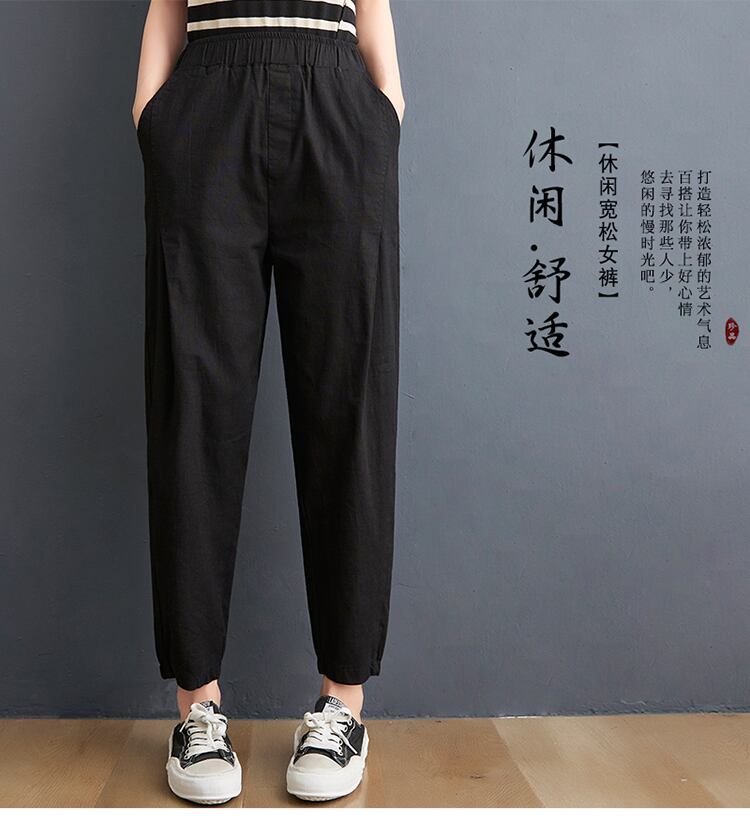 ラージサイズのファッションカジュアルパンツの女性は2021年夏に緩い新しい伸縮性のあるウエスト細いウエストの9ポイントパンツオールマッチ エラスティック 大きめサイズ サマー 夏物 TB2-49 TB2-498425468605