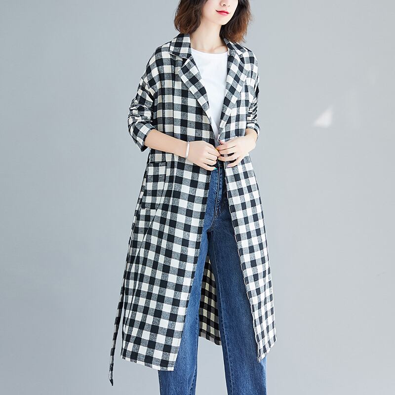 ラージサイズのレディーススーツカラーチェック柄ジャケットレディースルーズチベットミートウエストは薄めミドル丈ウインドブレーカーレディース秋新作スタイル 大きめサイズ オータム 秋物 TB2-49 TB2-4948590985835