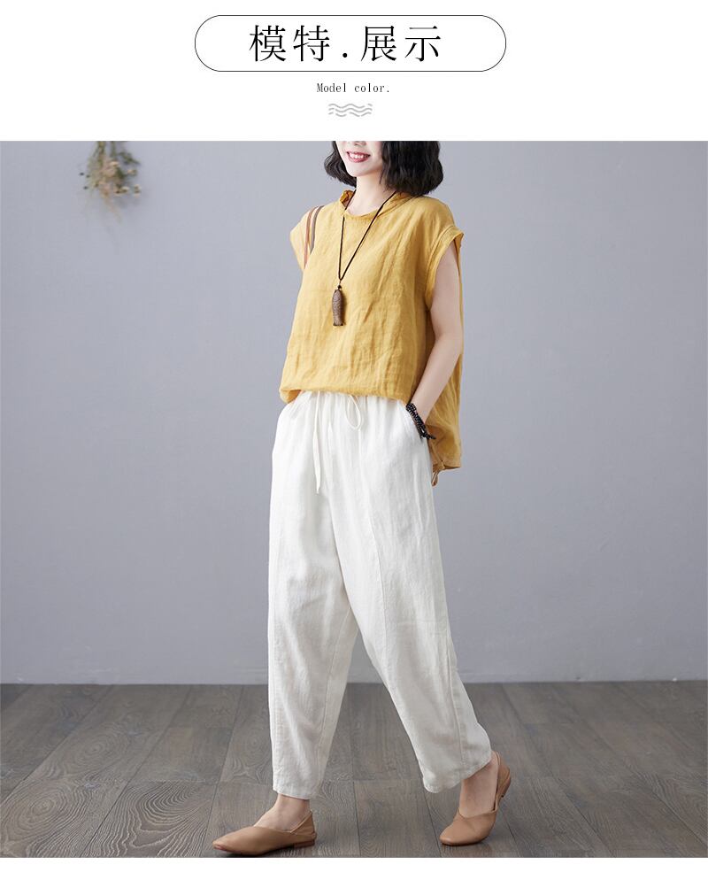 2021年夏のニュースタイルエイントレードラージサイズネットカラーコットン&リネン巾着カジュアルパンツレディース伸縮性ウエストルーズ9点ワイドレッグパンツ エラスティック 大きめサイズ サマー 夏物 TB2-59 TB2-5914619840155
