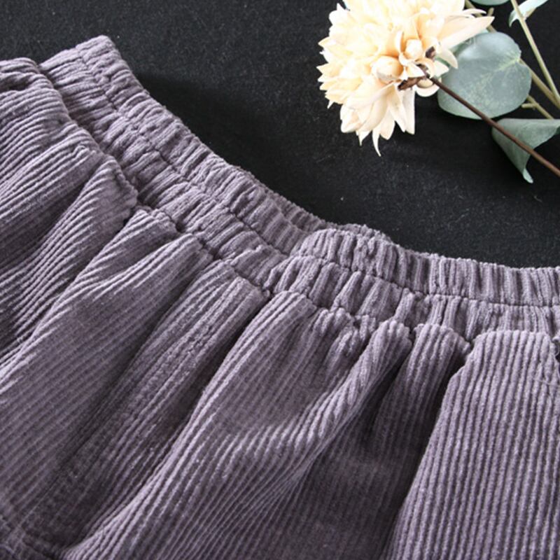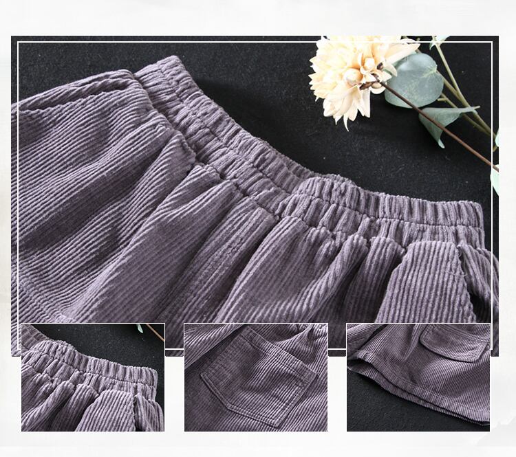 Suyixiangリテラシーコットンコーデュロイショーツ女性の初秋の新しい無地のルーズリテラリー薄い厚いストライプのスラックス オータム 秋物 ブルマー ソリッドカラー TB2-56 TB2-5614187979079