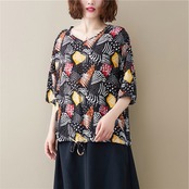 ファットシスタールーズカバーベリースリミングツーピーススーツサマープリントVネックブラウス+ワイドレッグパンツスカートパンツプラスサイズ婦人服 大きめサイズ 夏物 ワイドパンツ TB2-53 TB2-5358739602164