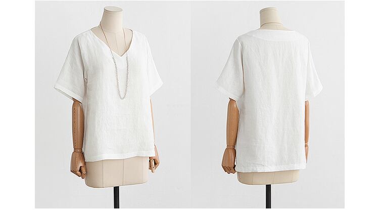 2017夏の新しいスタイルのヨーロッパとアメリカのルーズスリミングプラスサイズのカジュアルなVネックボトミングシャツリネン女性の半袖Tシャツタイド5836 大きめサイズ サマー 夏物 ヨーロピアン TB2-68 TB2-6818180154501