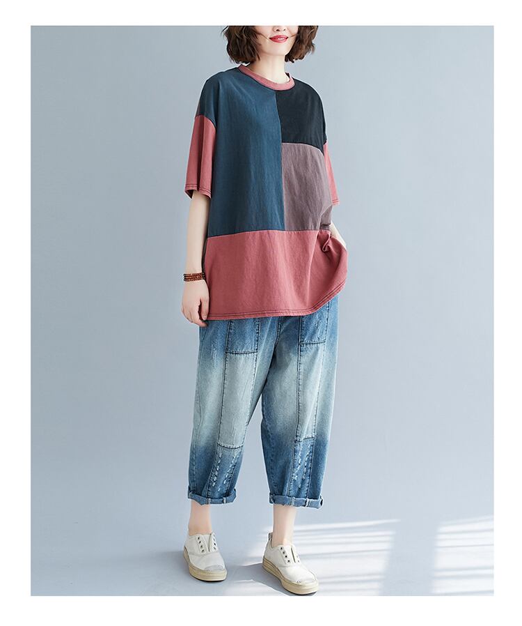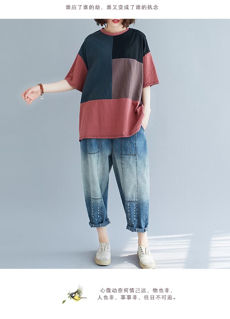特大サイズの婦人服、太った女性、お腹を覆う、薄いトップ、ウエスタンスタイル、ルーズエイジ、ヒットカラーTシャツ、2021年夏新作 大きめサイズ サマー 夏物 TB2-49 TB2-4945435991072