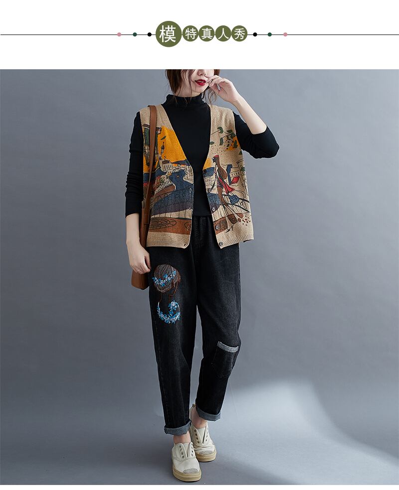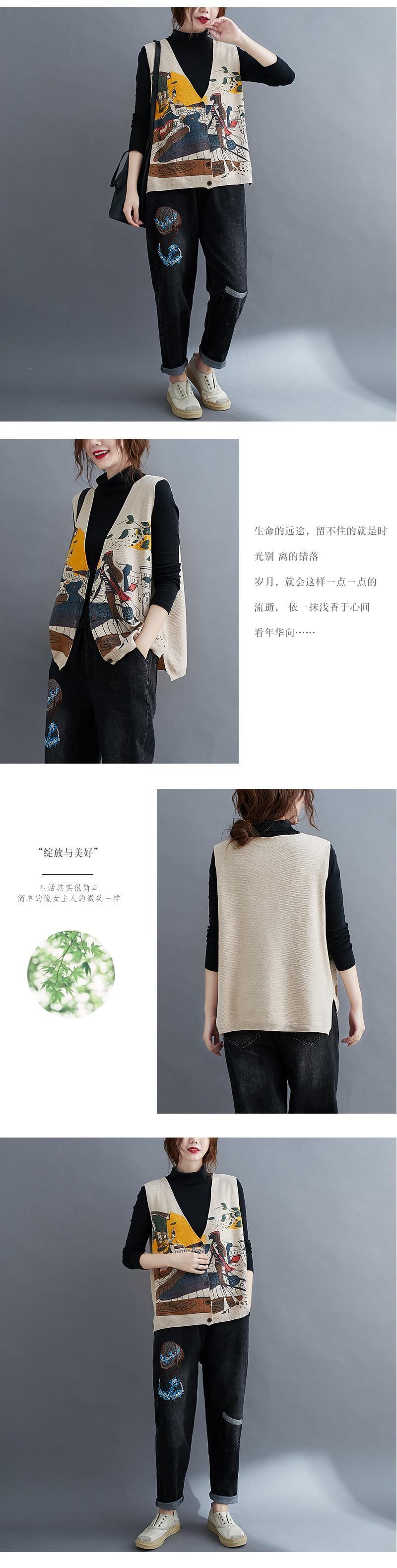 2020年秋新作レトロプリントニットセーターレディースルーズラージサイズスリミングシングルブレストボトミングベスト 大きめサイズ オータム 秋物 TB2-49 TB2-4939154088325