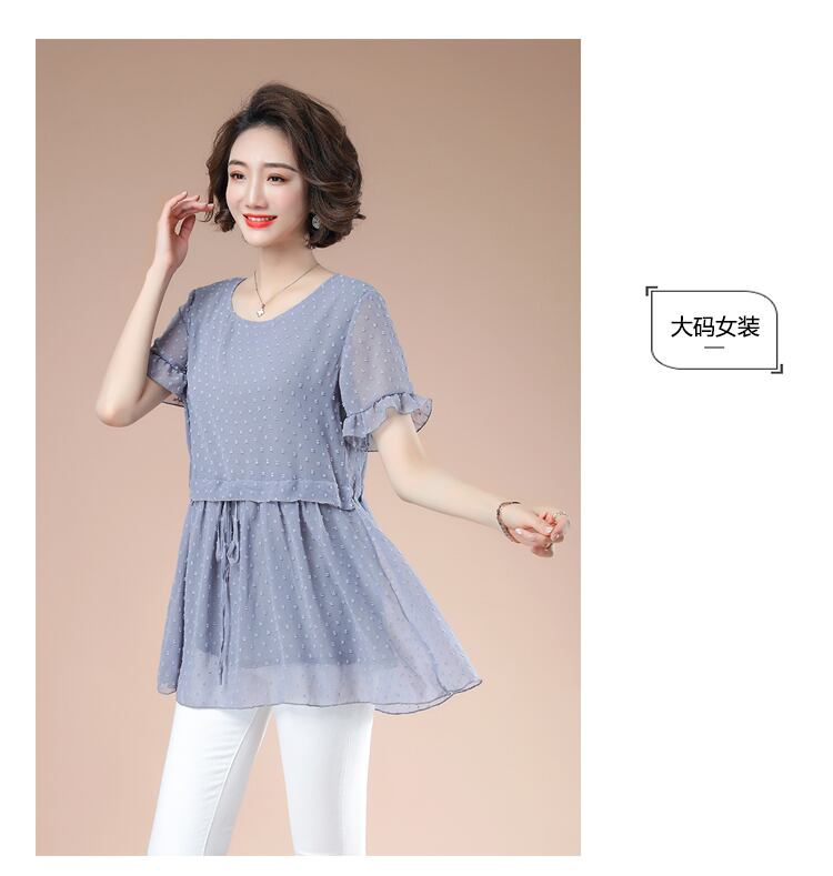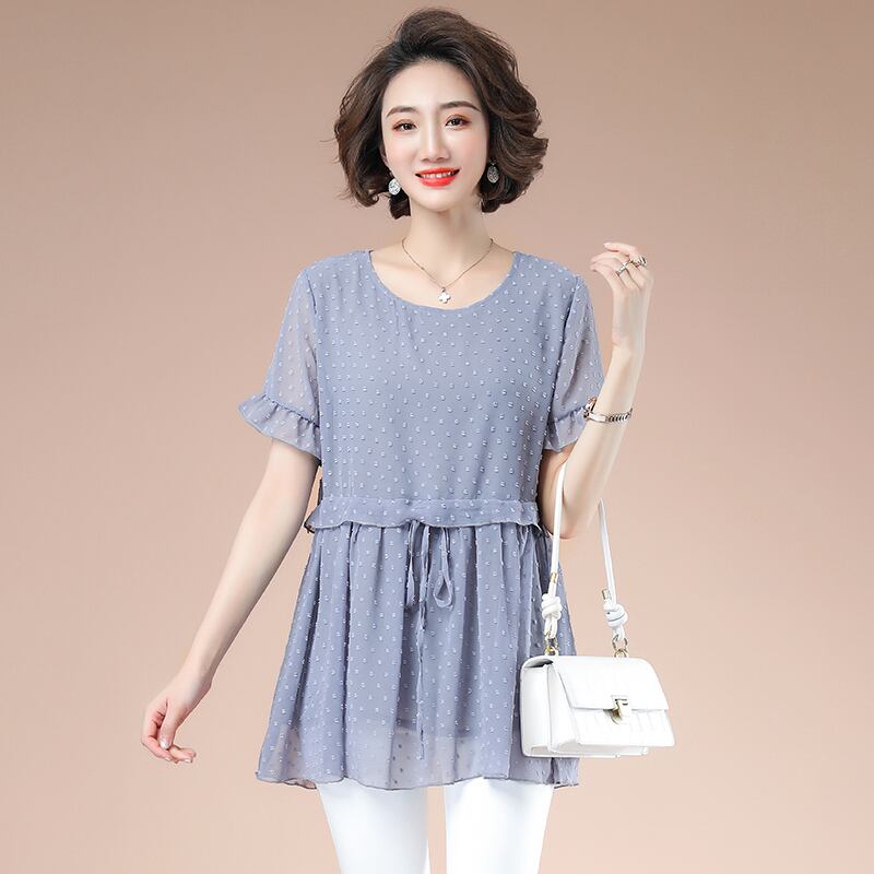 シフォンシャツレディースサマードレス2021新しいプラスサイズのレディースミドル丈半袖ウエスタンスタイルのスモールシャツレディーストップルーズで薄い 大きめサイズ 夏物 TB2-49 TB2-4964650201336
