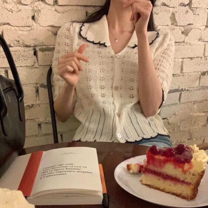 洋風中空薄Vネックラペルニットカーディガン半袖レディースサマーレトロヒットカラートップコートショート 夏物 TB2-52 TB2-5229503279957