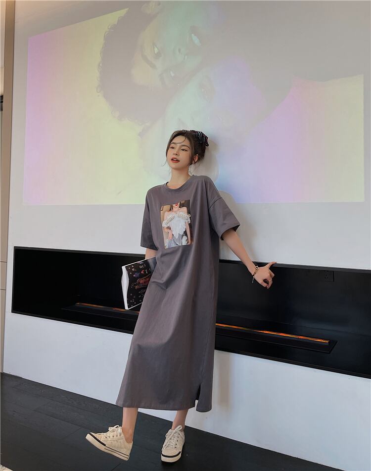 2021年の新しい夏のドレス太った姉妹の長いスカートスリット半袖ゆるいチベットの肉プラスサイズの痩身ドレス怠惰な女性 ショート ロング ハーフスリーブ 大きめサイズ サマー 夏物 TB2-36 TB2-3664835866457