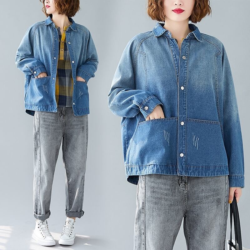 秋のカジュアルルーズルーズルックの薄いレトロショートデニムジャケット女性ジャケットジャケットファットシスタープラスサイズの婦人服のバージョン 大きめサイズ オータム 秋物 TB2-53 TB2-5347407962196