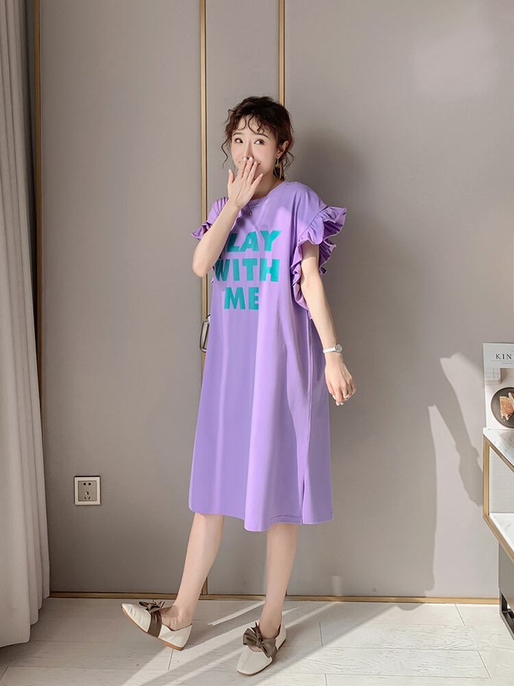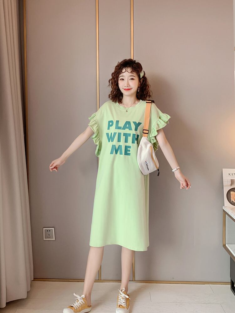 マイクロファットな女性の夏のルーズで薄いコットンの半袖Tシャツドレスミドル丈で年齢を減らすバットスリーブのトップドレスの女性 サマー 夏物 TB2-16 TB2-1647724953134