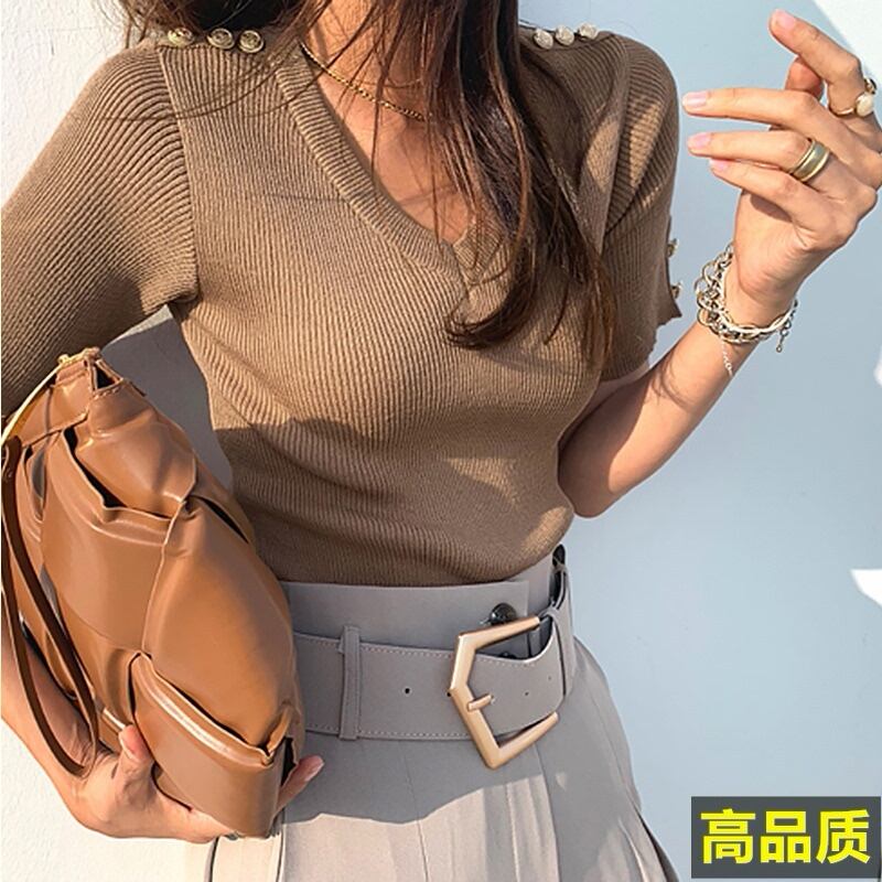 アイスシルクVネック薄ニットセーターレディース半袖サマーウエスタンスタイルオールマッチスリムスリミング無地トップTシャツタイド 夏物 ソリッドカラー TB2-52 TB2-5280503587206