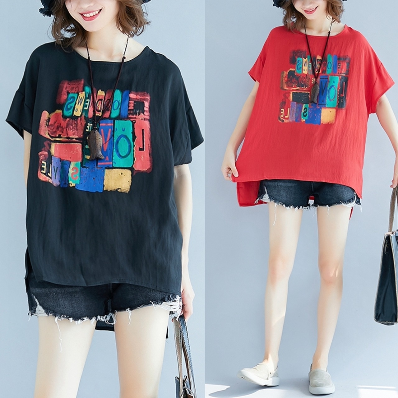 ファットmmサマー半袖プラスサイズ婦人服年齢を減らして薄くするTシャツプリントコットンとリネンショートとロングルーズベリーカバートップ 大きめサイズ 夏物 TB2-53 TB2-531989641618
